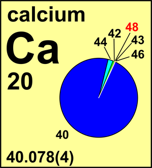 There is evidence for minor isotope fractionation of calcium in Nature, causing variability of Ar(Ca) in normal sources that is within the uncertainty of the standard atomic weight. Variations in n(44Ca)/n(40Ca) can be reported as δ44Ca values relative to the calcium carbonate reference material NIST-SRM 915a. A recent compilation yielded a range of published δ44Ca values in natural samples from a low of -2.17 ‰ in a cougar bone with Ar(Ca) = 40.0778 to a high of +2.76 ‰ in egg white with Ar(Ca) = 40.0784. Elemental calcium with as δ44Ca = -6.0 ‰ (Ar(Ca) = 40.0773) also has been reported. Variations in the isotopic composition of marine calcium have occurred over the last 80 Ma.