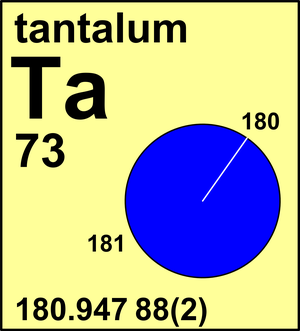 The minor isotope, 180Ta, is radioactive with a very long half-life of more than 1013 a. It is the last quasi-stable isotope to be discovered. Interest in this isotope is further heightened by the discovery that it is not the ground-state isomer.